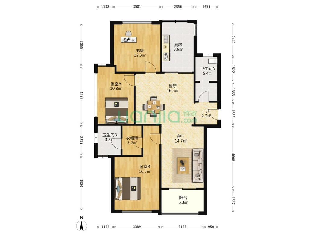 5月成交一套137.12㎡,总价442.5w,均价3.22w/㎡,三房两卫三厅带南北阳台,三开间朝南,所有房间全明,放现在妥妥150+的户型,住住没毛病。