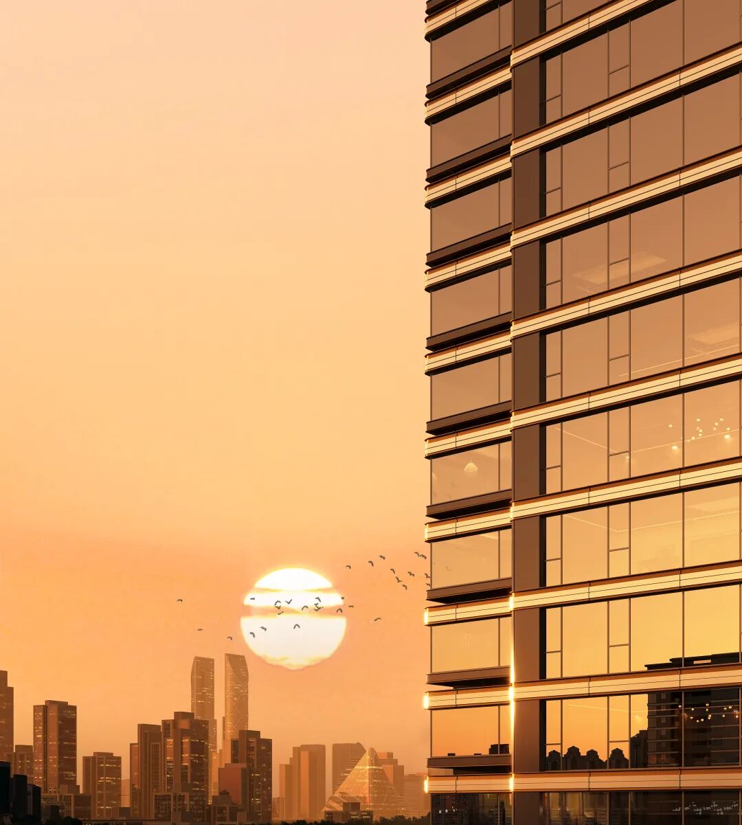 在2024年获国务院批复的《杭州市国土空间总体规划》中,城西科创大走廊被正式确立为与武林湖滨、钱江两岸并列的杭州三大全球功能中心之一。保利天奕正位于这条大走廊的核心未来科技城中轴绿汀路上,建筑立面选用四面铝板和蓝灰Low-E玻璃,以香槟金色金属收边,与周边vivo、字节跳动这些科技总部的气质相呼应,呈现出杭州第三中心应有的现代感与精度。