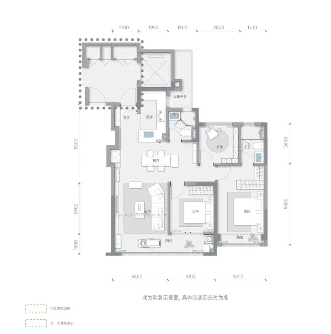 阳台经合规优化,仅按一半面积计算却提供了完整功能。