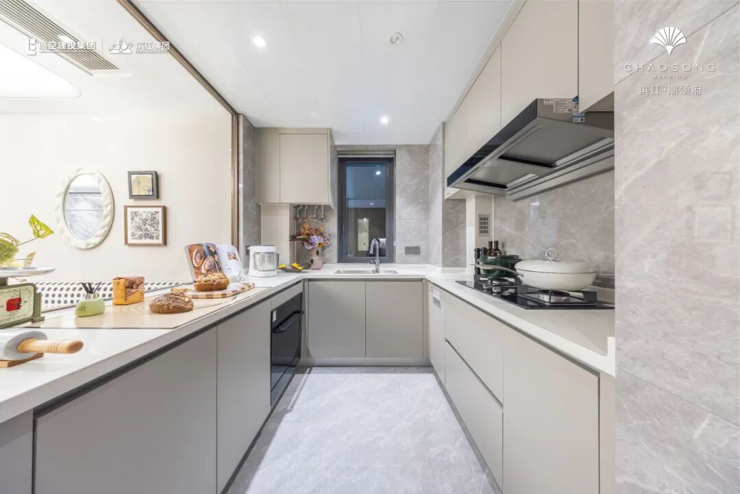 但更让人安心的是,虽然价格亲民,品质却没有打折。潮颂府由滨江集团打造,门头使用了巨幅紫山水岩板,外立面极窄边框勾勒出流畅的横向肌理,整体造型简洁而富有张力,营造明亮轻盈的室内外视觉交互。