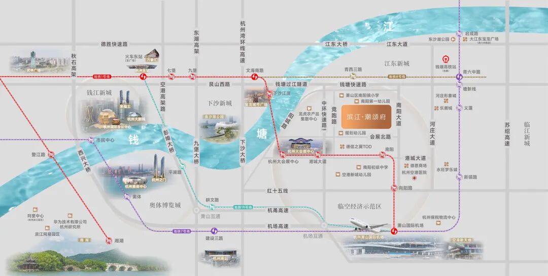 潮颂府周边三条地铁线路交汇,覆盖了杭州主要生活圈: