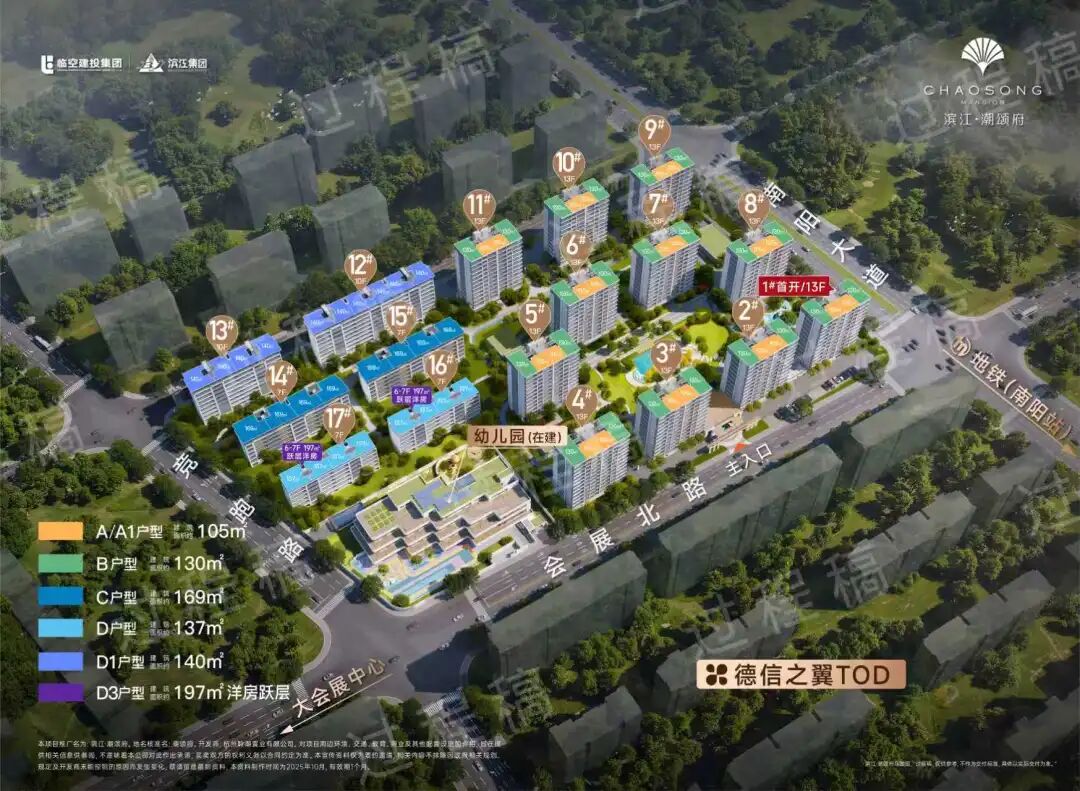 2、本文所用效果图为过程稿,非要约或承诺,不作为交付标准。效果图存在一定艺术处理,与实景存在一定差异,效果图体现的外立面颜色、材质、线条、分缝线、栏杆、玻璃及门窗玻璃分块大小、样式、构筑物及效果图所示效果、位置关系、比例、局部细节等内容仅供参考,具体以实际为准,后期存在拆改、调整的可能,不作为交付标准,最终交付以买卖双方签订的《商品房买卖合同(预售)》(含补充协议、附件)、《置业指南/手册》等书面文件和政府最终批准文件为准。