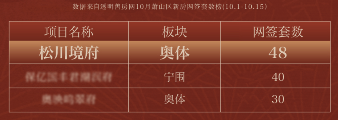 说起来,松川境之前首开的成绩确实亮眼:64套房源,28.19%的中签率,双周超8000人次到访,线上开盘直接售罄,10月上半月萧山网签套数TOP1。在现在这个改善客户都特别谨慎的市场环境下,能交出这样的成绩单,绝对值得好好分析一下。