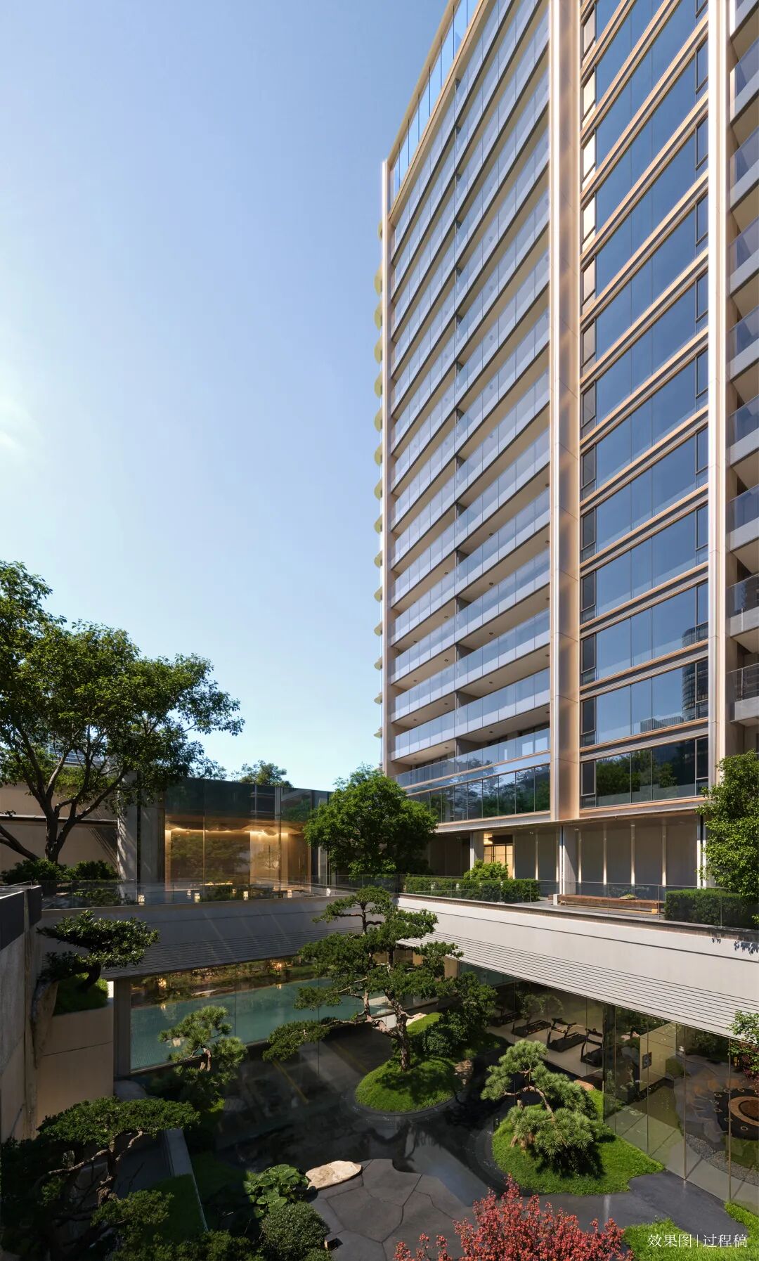 3.约40米南向楼间距,正对下沉庭院。因为会所下挖了约8米,哪怕住在二楼,视野都跟普通楼栋四楼一样好。