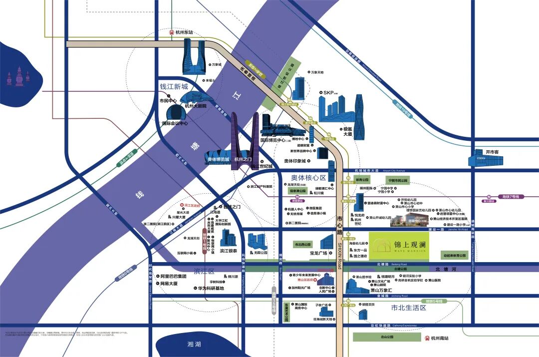 20分钟交通圈覆盖奥体、滨江、钱江世纪城、萧山市心。