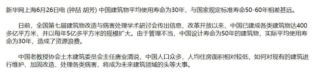 作为房屋分类的三类建筑(普通民居),我的结构设计年限是50年。然而,自1998年以来,家族平均使用寿命也就大约30年,当然其中不乏拆迁的因素;