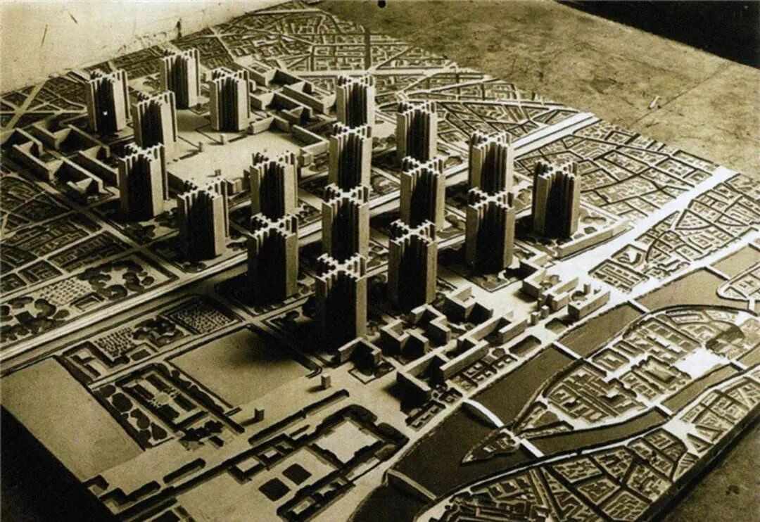 大概一个世纪前,有个叫柯布西耶的法国人(现代主义旗手)在图纸上定义了我们这种组合,叫我们“明日的光辉城市”,为工业社会的效率最大化、人的异化量身定做;