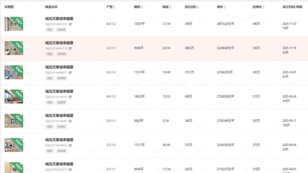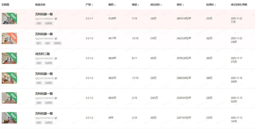 其他二手如臻城幸福里、万科杭宸等,近期成交都以小户型为主,总价约300万左右。