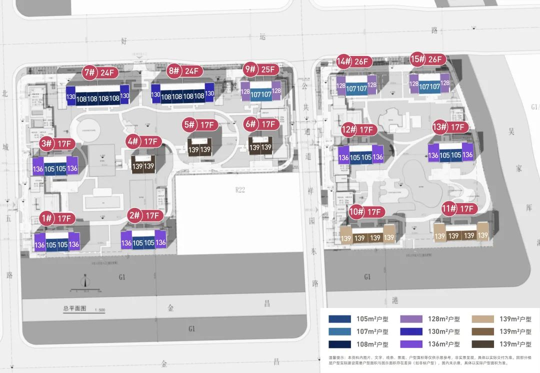 139㎡左右户型,燕语海棠轩的楼幢139㎡的位置会更好。