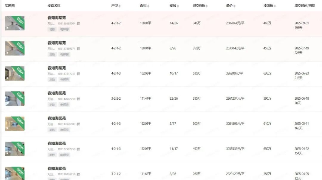 春知海棠苑整体户数为718户,挂牌42套,面积为111-162㎡。这个小区以160㎡和162㎡的大户型为主,111㎡中间套和138㎡边套占4幢楼。