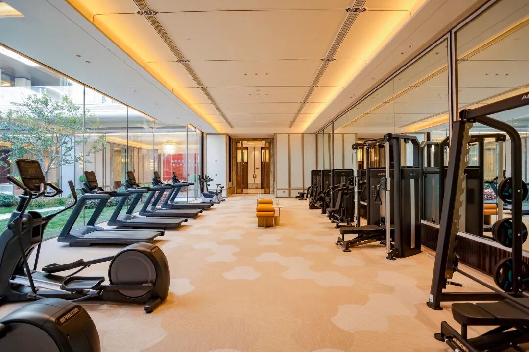 下沉式会所有三大功能:会客厅相当于业主的第二客厅。恒温泳池是按五星酒店标准做的,冬天也能游。健身房配的是美国必确和正伦的器械,还是挺专业的。