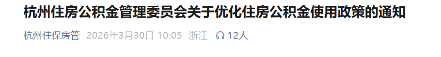 原文:本通知自2026年4月1日起施行。具体细则由杭州住房公积金管理中心制定。