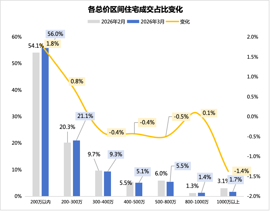 ▲来自杭州贝壳研究院最有说服力的,3月的二手数据,只有800-1000w一级的二手成交在变多,也是800-1200w这一档的改善购买力在房叔后台咨询里最痛苦。